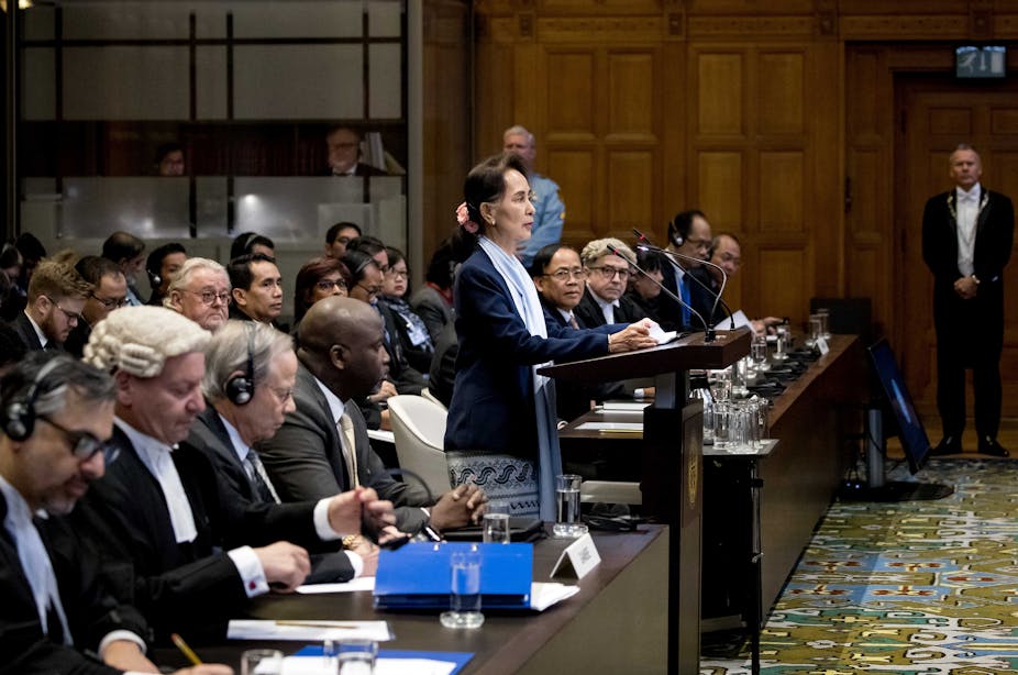Aung San Suu Kyi before the International Criminal Court in The Hague in December. Koen Van Weel/EPA